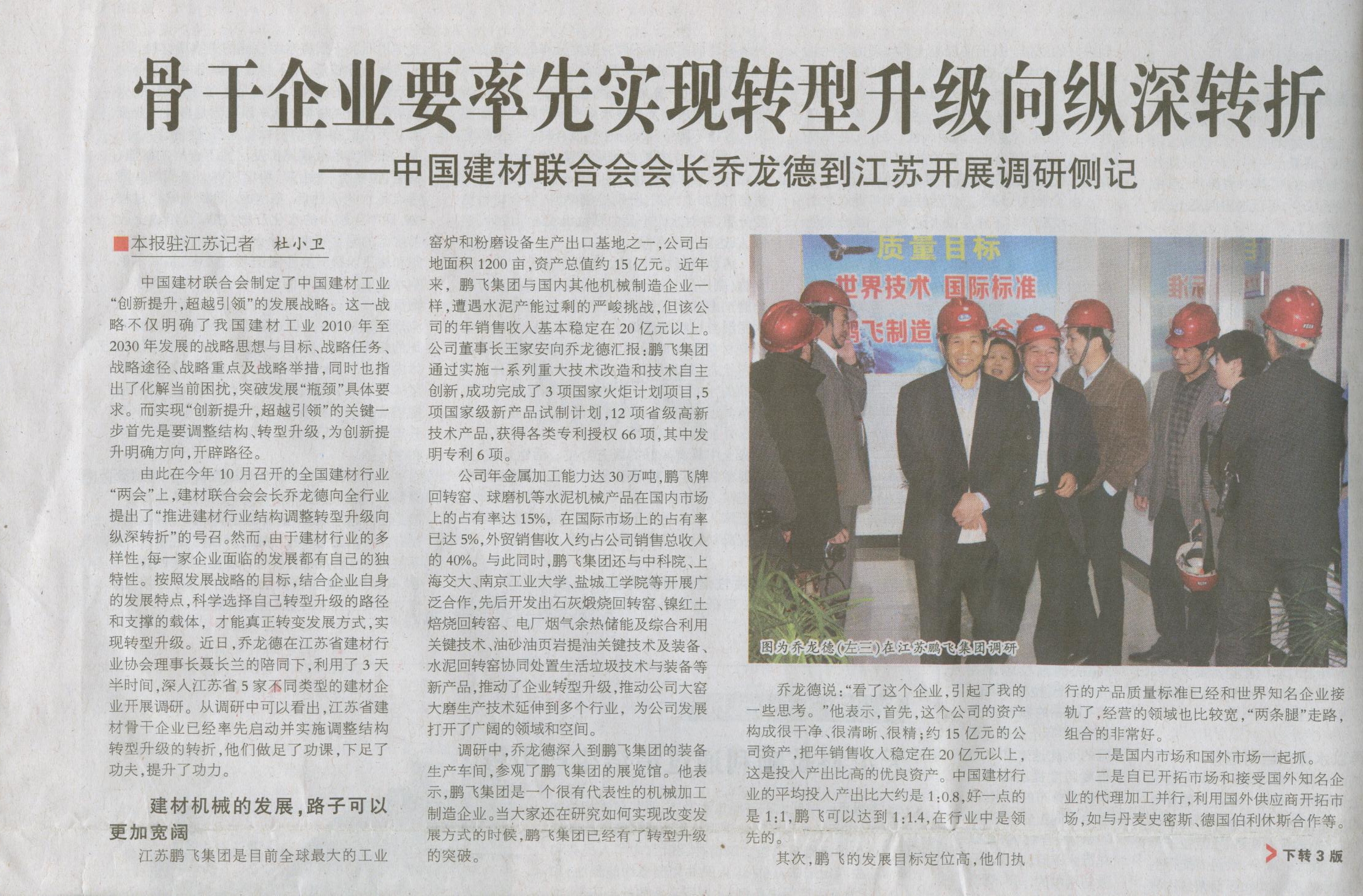 骨干企業(yè)要率先實現(xiàn)轉(zhuǎn)型升級向縱深轉(zhuǎn)折——中國建材聯(lián)合會會長喬龍德到江蘇開展調(diào)研側(cè)記