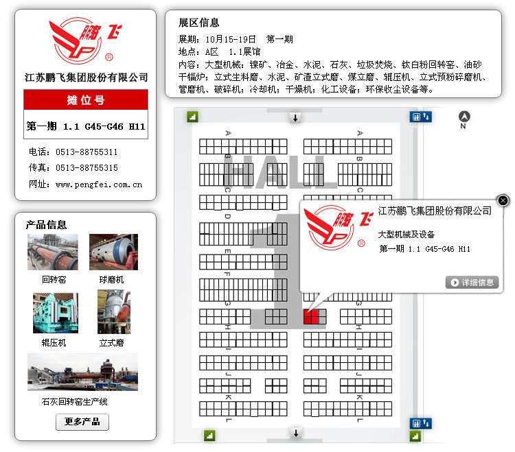 江蘇鵬飛集團在廣交會上精心布置展位,印發(fā)各類設備的介紹手冊,整體模型展示水泥生產(chǎn)線產(chǎn)品,委派具有多年工作經(jīng)驗的銷售、技術、售后等專業(yè)工作人員為顧客詳細介紹新產(chǎn)品、新技術,全面分析解答各類設備從購買到投產(chǎn)使用以及售后服務等每個環(huán)節(jié)的問題,為您排疑解難,與您達成共識。同時,也希望能和更多的國內(nèi)外公司加強聯(lián)系,互相合作,為客戶提供更加完美的產(chǎn)品。