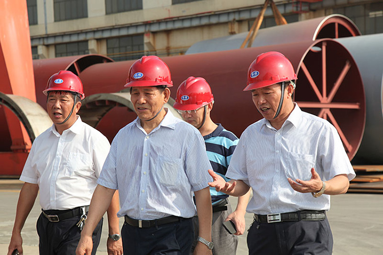 9月19日,中國建材聯(lián)合會喬龍德會長深入到江蘇鵬飛集團(tuán)總部生產(chǎn)基地調(diào)研,喬會長輕裝簡從,深入工廠車間現(xiàn)場,詳細(xì)了解公司裝備制造情況,了解鵬飛回轉(zhuǎn)窯在國內(nèi)外行業(yè)中所處的地位和影響。當(dāng)?shù)弥i飛集團(tuán)2016年獲得國家企業(yè)技術(shù)中心,2017年鵬飛回轉(zhuǎn)窯又榮獲全國制造業(yè)單項冠軍示范企業(yè)榮譽(yù)稱號后,對鵬飛集團(tuán)堅定信心,主動出擊,加大服務(wù)型制造,努力推動鵬飛高質(zhì)量發(fā)展的做法給予充分的贊揚(yáng)和肯定。