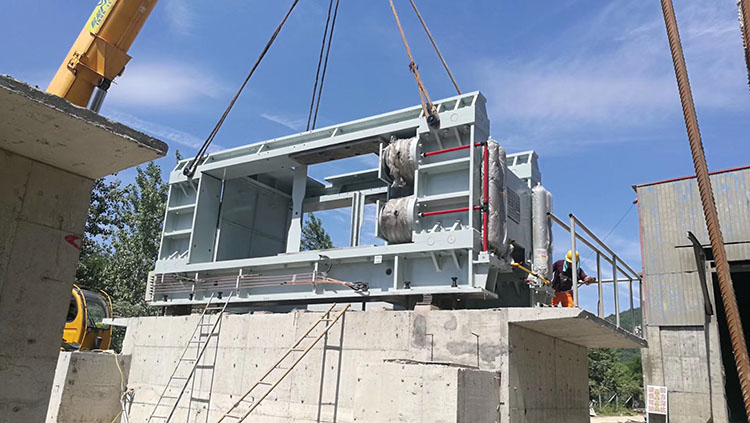 在項目施工現(xiàn)場鵬飛制造的PFG180-120輥壓機已進(jìn)入安裝階段。