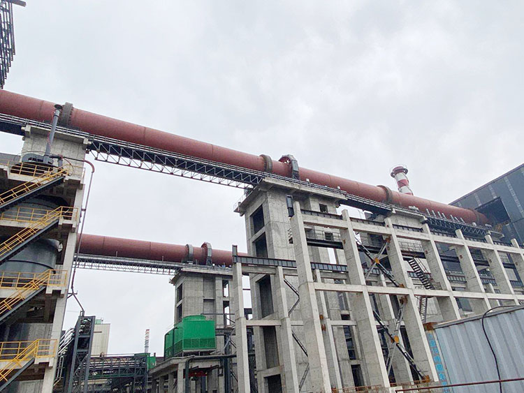 圖片為年產(chǎn)100萬噸鎳鐵合金二期工程安裝現(xiàn)場,鵬飛集團提供Φ5.5×115m鎳鐵焙燒回轉(zhuǎn)窯和Φ5×50m烘干回轉(zhuǎn)窯生產(chǎn)制造。