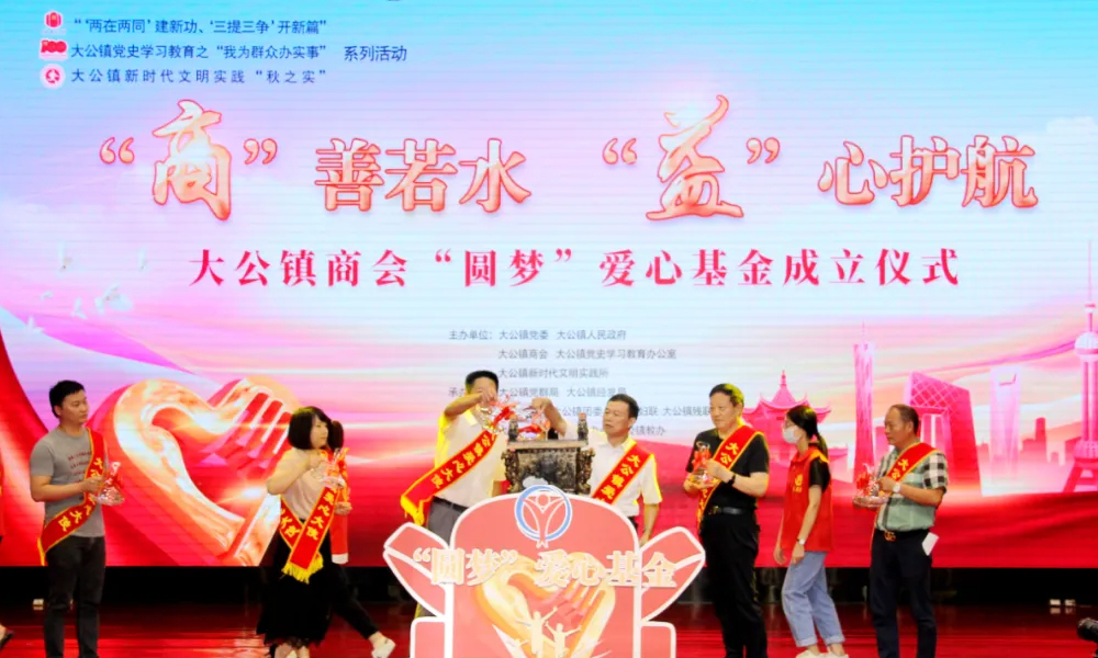 涓涓細流匯成大海,大公鎮(zhèn)商會會員企業(yè)家代表共同將愛心基金注入愛心池。緩緩騰起的煙霧,象征著企業(yè)蒸蒸日上的業(yè)績,更象征著青少年們騰起而飛的夢想!