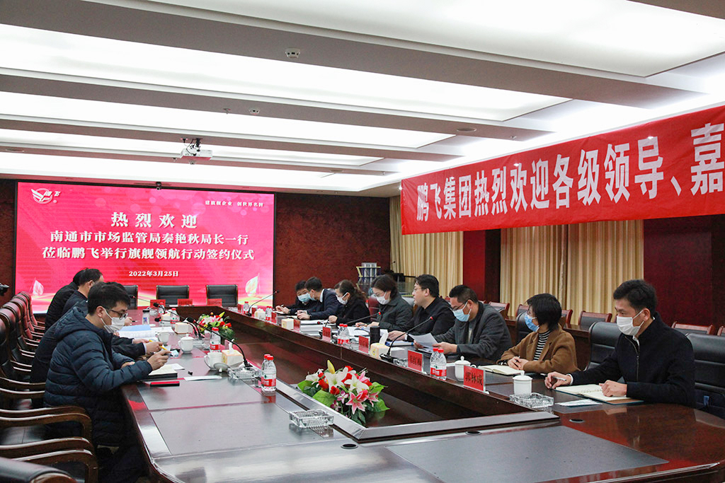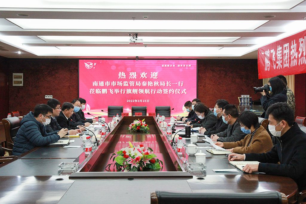 3月25日,江蘇鵬飛集團(tuán)與南通市市場(chǎng)監(jiān)管局、海安市市場(chǎng)監(jiān)管局共同簽署“旗艦領(lǐng)航”行動(dòng)三年共建協(xié)議。