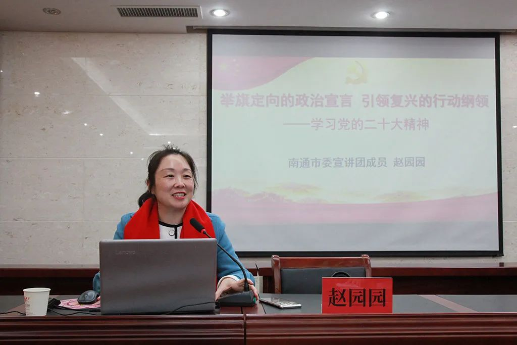 近日,深入推進學(xué)習(xí)宣傳貫徹黨的二十大精神在鵬飛集團蔚然成風(fēng),12月7日下午,南通市委宣講團成員,南通市委黨校副校長、教授趙園園走進鵬飛,來公司開展學(xué)習(xí)貫徹黨的二十大精神專題宣講,進一步引導(dǎo)鵬飛人把思想和行動統(tǒng)一到黨的二十大精神上來。鵬飛集團在新征程上用黨的創(chuàng)新理論武裝頭腦、指導(dǎo)實踐、推動工作,更好地“扛起新使命、譜寫新篇章”,以實際行動和過硬成果推動黨的二十大精神落地見效。大公鎮(zhèn)黨委書記金山存、黨委副書記閻超、宣傳委員徐譯,鵬飛集團黨委書記、董事長王家安等認真聽取了宣講內(nèi)容,經(jīng)發(fā)局全體人員、鵬飛集團全體負責(zé)人、工人代表等參加專題學(xué)習(xí)。
