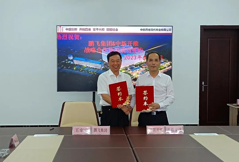 座談交流結束后,中新開維與鵬飛集團共同簽訂了戰(zhàn)略合作協(xié)議,雙方將建立常態(tài)化交流聯(lián)系機制,加強全方位的合作,共謀高質量發(fā)展新格局。衷心希望雙方以此次簽約為起點,同心同向、攜手共進,把合作具體工作細化量化,推動水泥工業(yè)用回轉窯早日在食品生產領域創(chuàng)新應用,打造食品行業(yè)規(guī)?;椭悄芑氖痉稑藯U,實現(xiàn)合作共贏,共創(chuàng)美好未來。