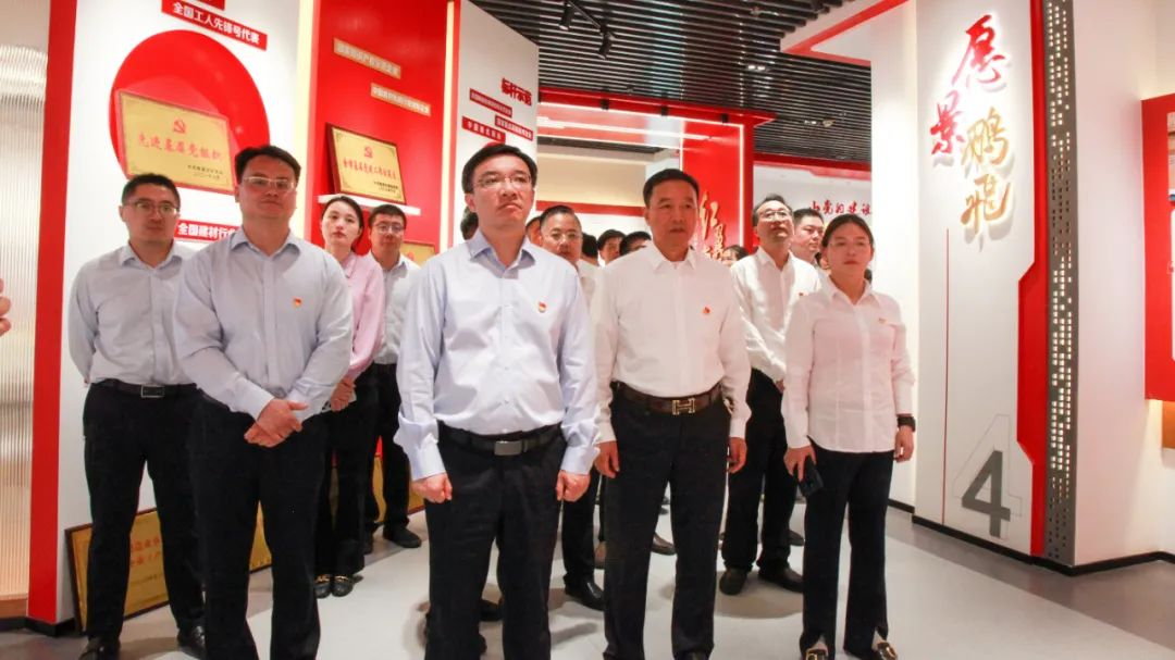 海安市委常委、組織部部長、統(tǒng)戰(zhàn)部部長錢旭東一行參觀鵬飛黨建館,了解了鵬飛集團(tuán)“鵬心向黨 窯望未來”黨建品牌內(nèi)涵