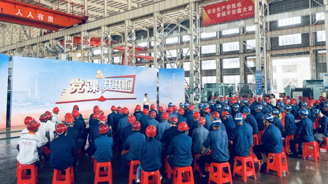 鵬飛集團(tuán)董事長王家安、副總經(jīng)理施鵬宇在生產(chǎn)一線為職工上黨課,鼓勵(lì)員工不斷加強(qiáng)學(xué)習(xí)、提高素質(zhì)、強(qiáng)化安全意識、勇于擔(dān)當(dāng)作為、注重團(tuán)隊(duì)協(xié)作