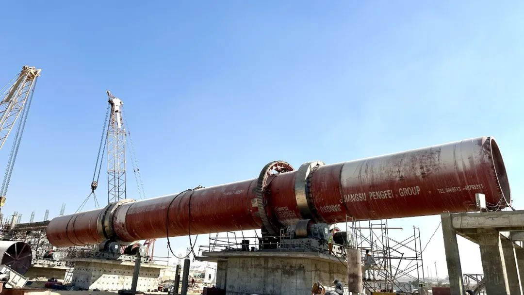 鵬飛集團(tuán)生產(chǎn)的Φ4.5x68m回轉(zhuǎn)窯在埃及皇家水泥氧化鋅項(xiàng)目安裝現(xiàn)場