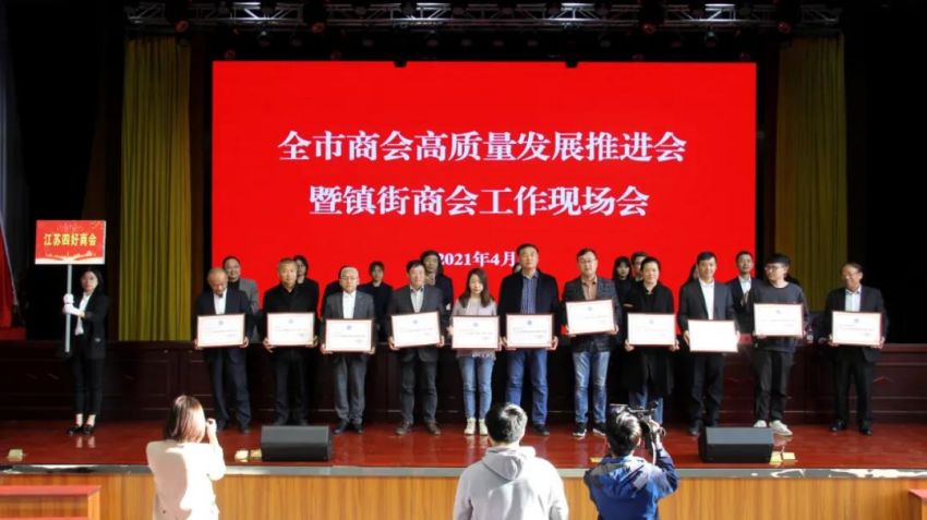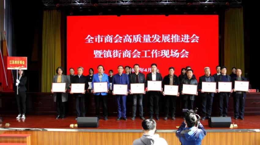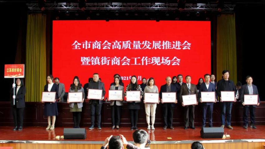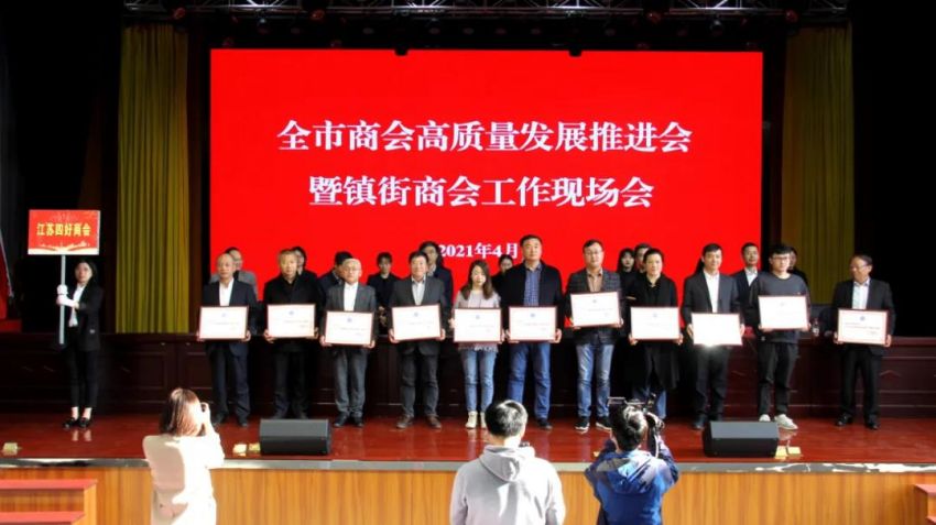 為學習貫徹中央、省商會工作會議精神,加快推進全市商會基層組織建設,推進商會組織高質(zhì)量發(fā)展。4月19日下午,南通市工商聯(lián)(總商會)在我鎮(zhèn)隆重召開“全市商會高質(zhì)量發(fā)展推進會暨鎮(zhèn)街商會工作現(xiàn)場會”。南通市政府副市長、一級巡視員趙聞斌,江蘇省工商聯(lián)黨組成員、副主席李曉林,南通市委統(tǒng)戰(zhàn)部副部長、市工商聯(lián)黨組書記王虎,海安市委常委、組織部長、統(tǒng)戰(zhàn)部長張明星,南通市工商聯(lián)黨組成員、副主席羅加宏,海安市政協(xié)副主席、工商聯(lián)主席、總商會會長蔡祝平,大公鎮(zhèn)黨委書記金山存,黨委副書記、鎮(zhèn)長魯競等參加活動。出席會議的還有省工商聯(lián)、市民政局相關處室領導,各縣(市)區(qū)委統(tǒng)戰(zhàn)部分管副部長、工商聯(lián)主要負責人及分管領導,全市各鎮(zhèn)街(園區(qū))統(tǒng)戰(zhàn)委員,商會會長代表,受表彰的全國抗疫先進典型,全國、省、市四好商會,榮獲全市商會十大工作品牌的商會,商會十佳會長,十佳秘書長,部分市直商(協(xié))會主要負責人,以及市工商聯(lián)相關部室人員共計250余人。