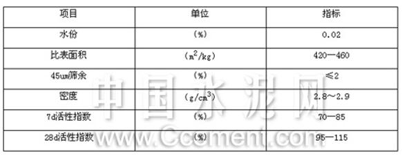2/kg時(shí),立磨臺(tái)時(shí)產(chǎn)量達(dá)52t/h,系統(tǒng)電耗為37.3kWh/t,制備的礦渣微粉性能見表8: