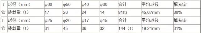 表1 球磨機設(shè)備廠家提供的鋼球級配