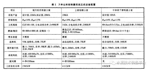 2 3種生料終粉磨系統(tǒng)的綜合對(duì)比
