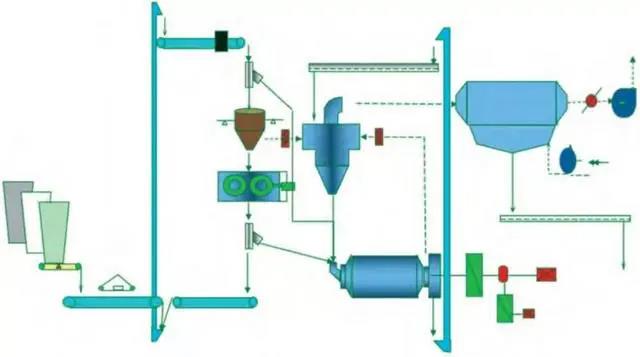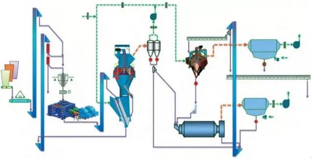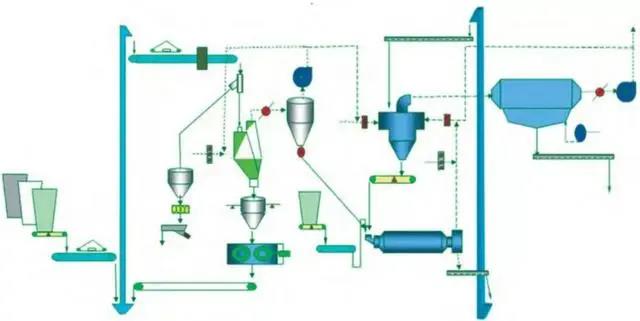該系統(tǒng)工藝簡單,設(shè)備少,維護(hù)工作量少,水泥成品全部經(jīng)過球磨機(jī)粉磨,成品粒度分布較寬,水泥性能穩(wěn)定。
