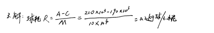 3、一臺(tái)磨機(jī)第一次裝入研磨體的質(zhì)量是210t,中間無(wú)補(bǔ)球,經(jīng)過(guò)粉磨10萬(wàn)噸水泥后清倉(cāng),清倉(cāng)后研磨體的總質(zhì)量為190t(不含碎球和過(guò)小的球),求該種研磨體球耗。