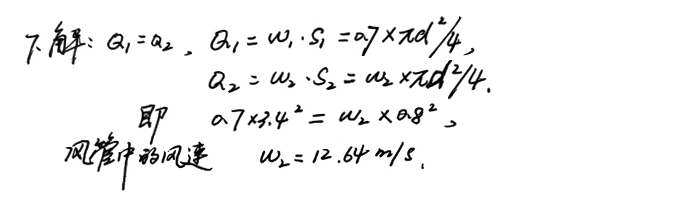 7、磨機(jī)有效直徑3.4m,測(cè)其風(fēng)速為0.7m/s,假設(shè)磨尾無(wú)漏風(fēng),磨尾風(fēng)管直徑為800mm,求風(fēng)管中風(fēng)速。