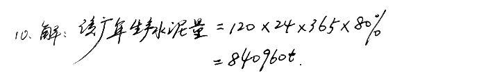 10、某廠水泥磨臺(tái)時(shí)產(chǎn)量為120t/h,問(wèn)運(yùn)轉(zhuǎn)率為80%時(shí),該廠一年可以生產(chǎn)多少水泥?